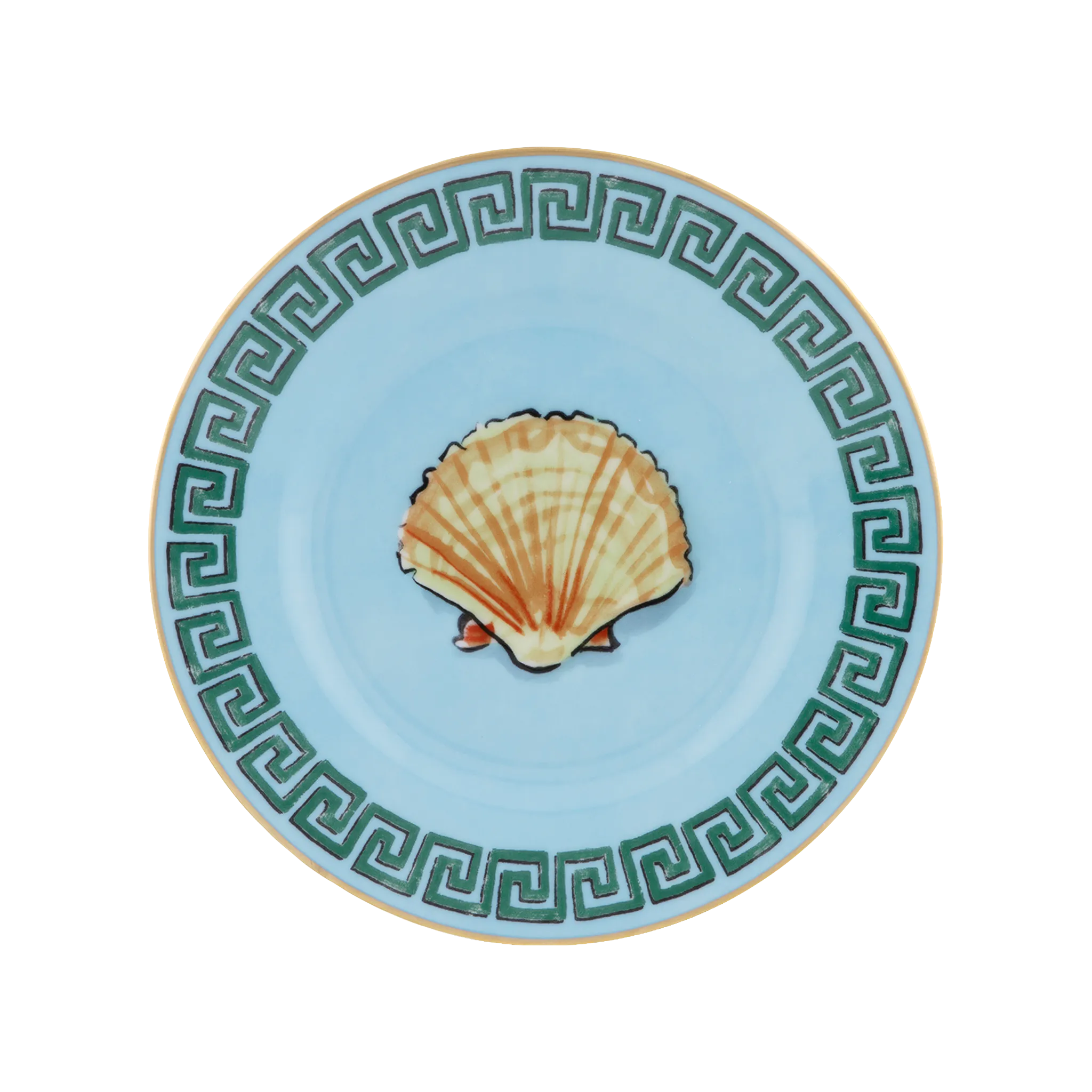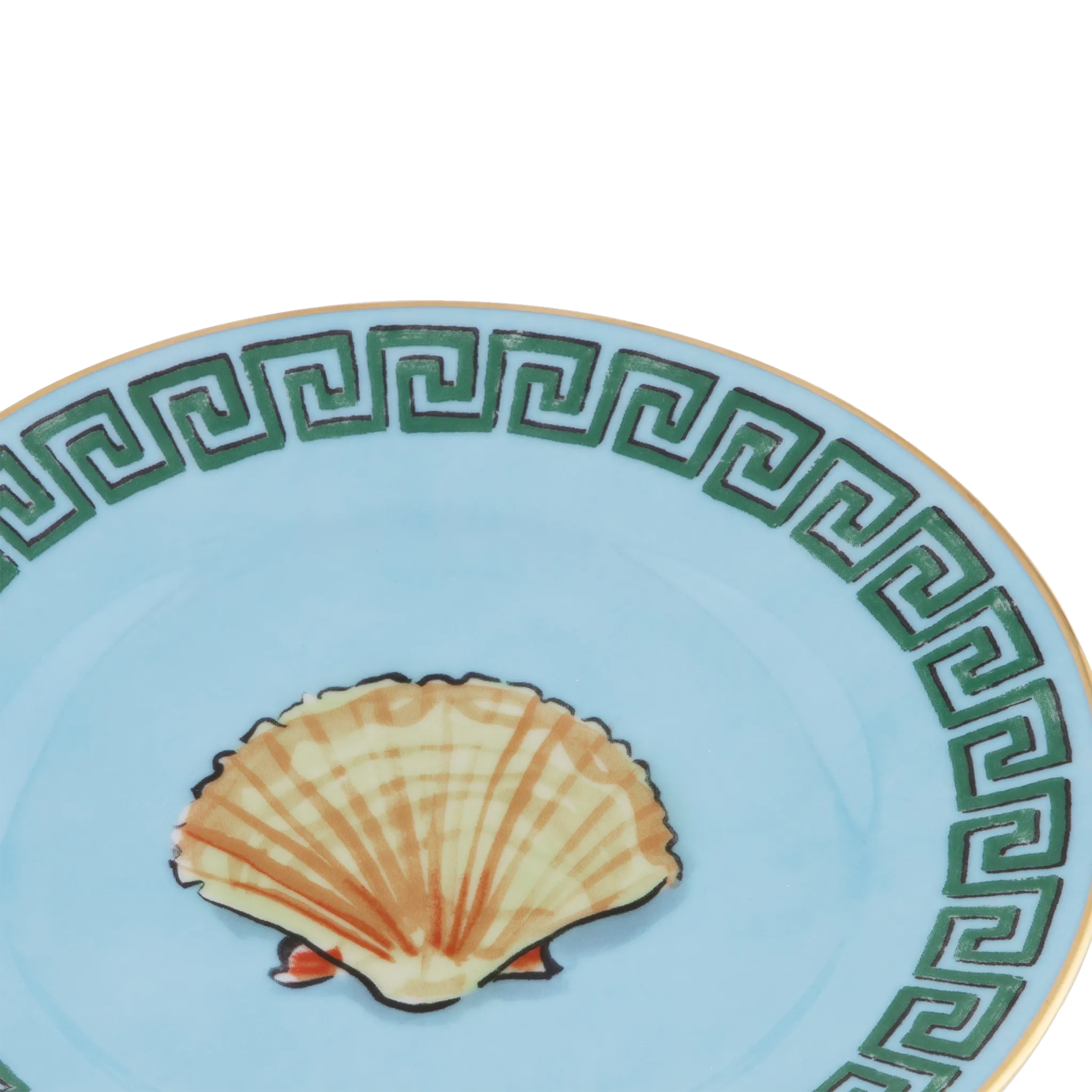 Prato de pão da coleção Il Viaggio di Nettuno pela Richard Ginori, em porcelana italiana laranja, com decoração marinha pintada à mão, com friso dourado.