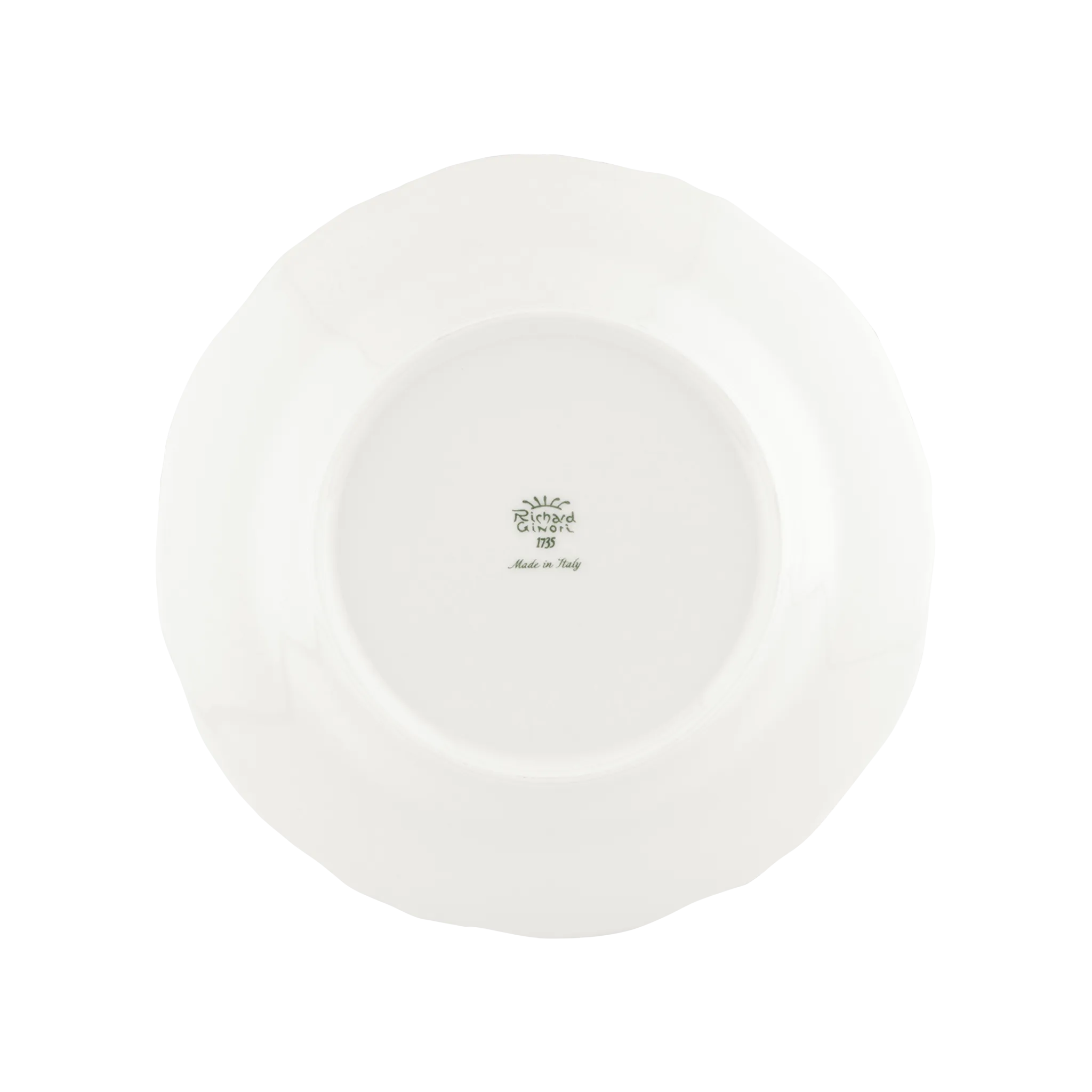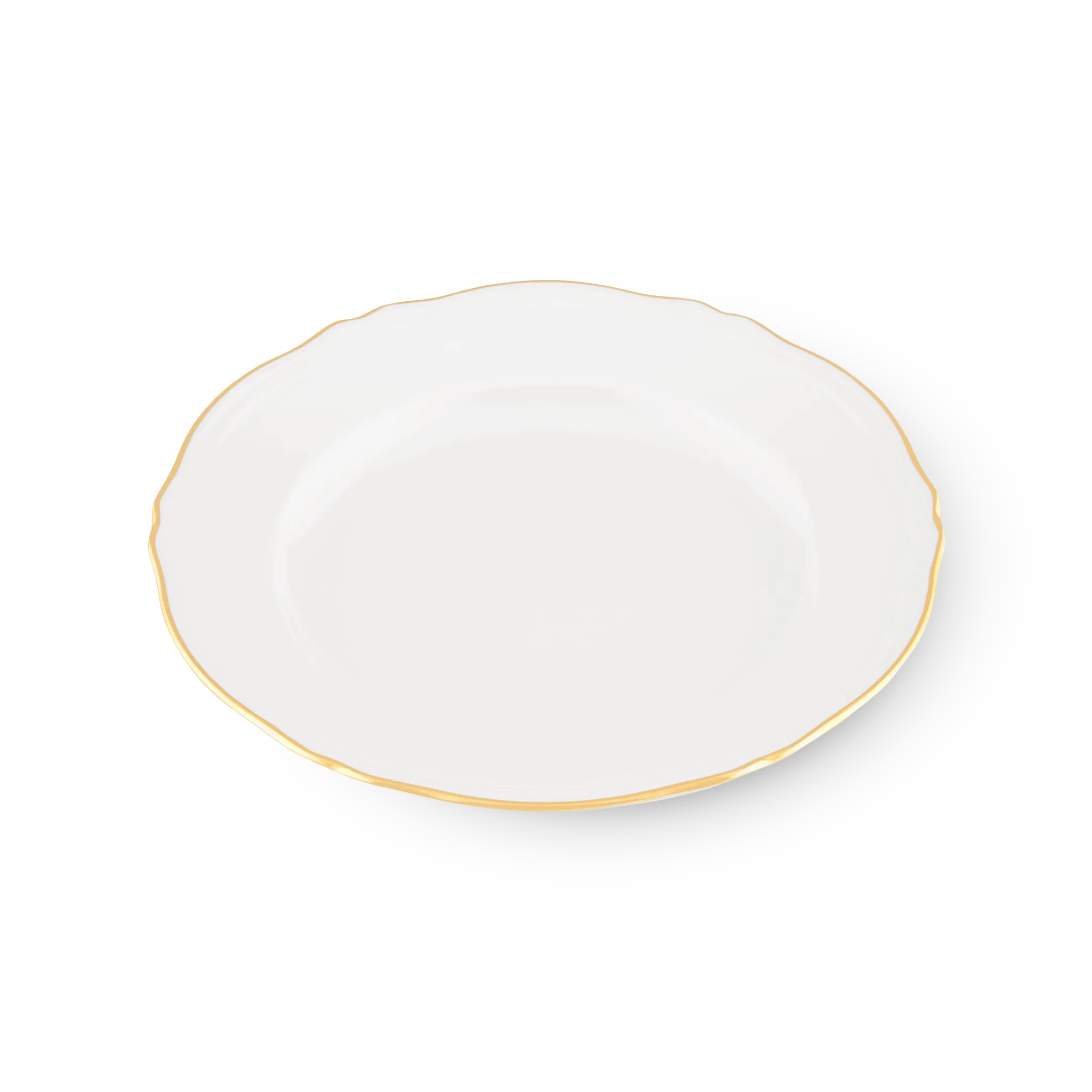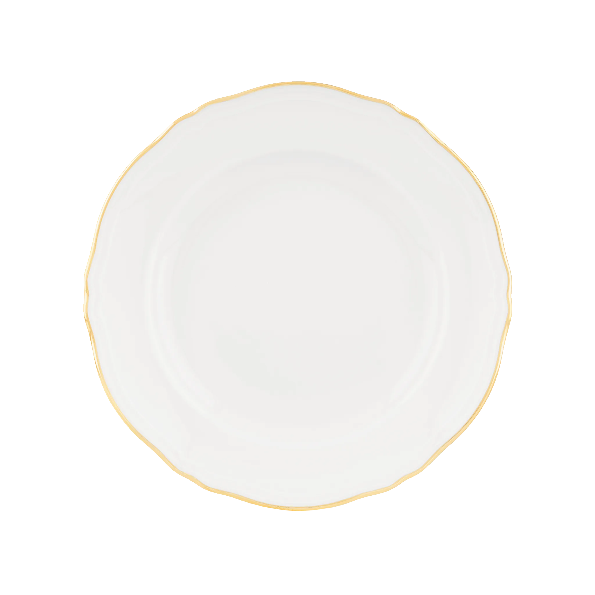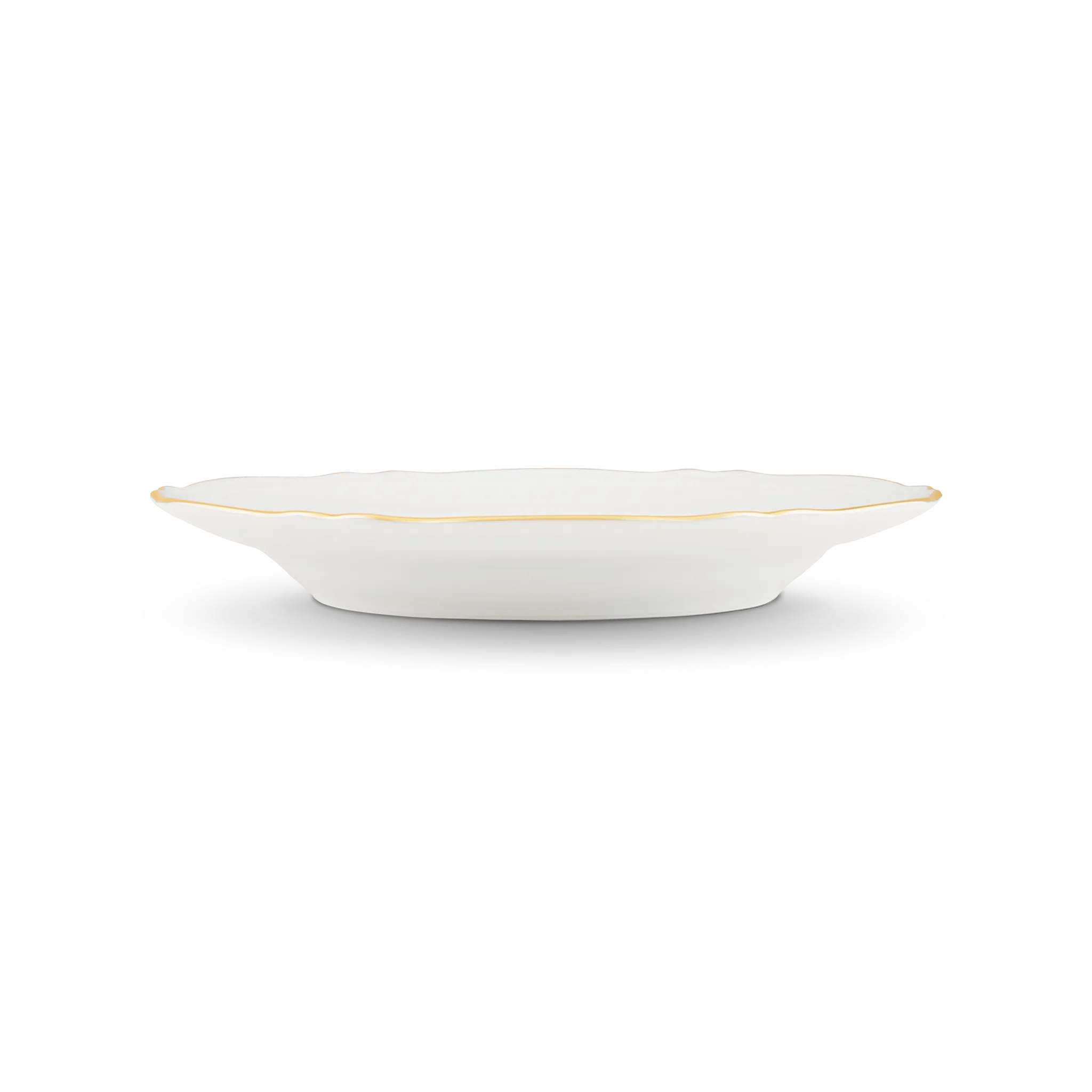 Prato sobremesa de porcelana italiana da Richard Ginori, pintado à mão em trabalho artesão manual na cor dourado.