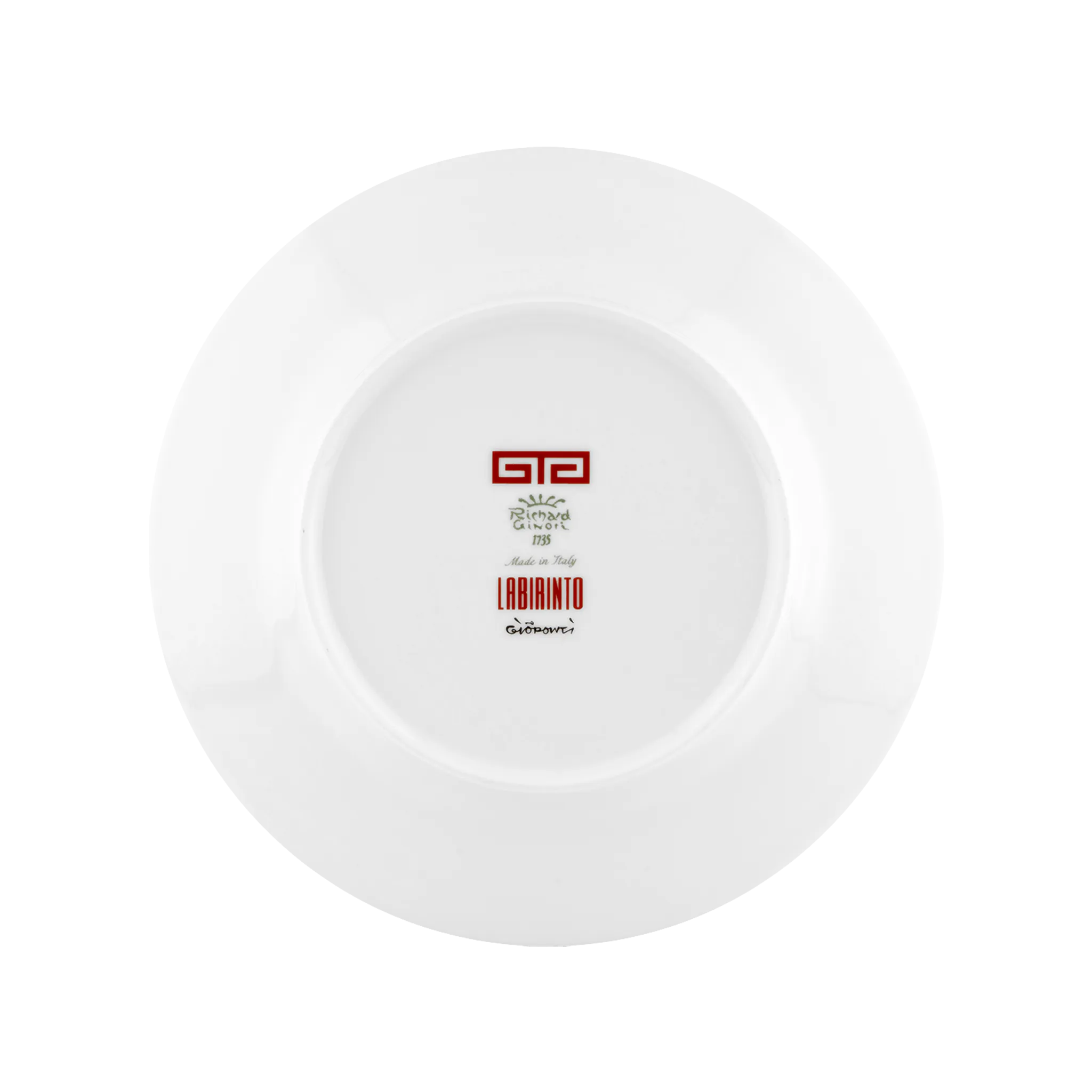 Prato sobremesa Ginori 1735 Gio Ponti Labirinto, uma complexidade sofisticada de linhas retas que, perseguindo umas às outras sem nunca se tocar, geram movimento, tontura, perplexidade. Um labirinto, de fato, no qual se perder é belo, no qual não há mais coordenadas. Acima e abaixo. Direita e esquerda.
