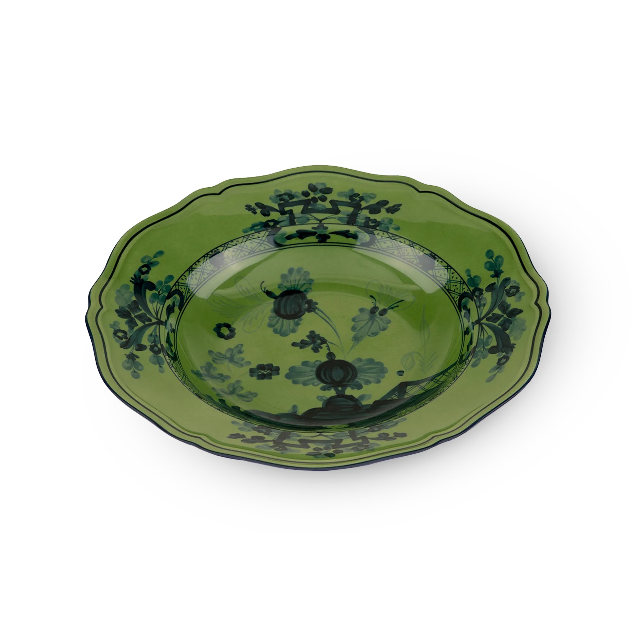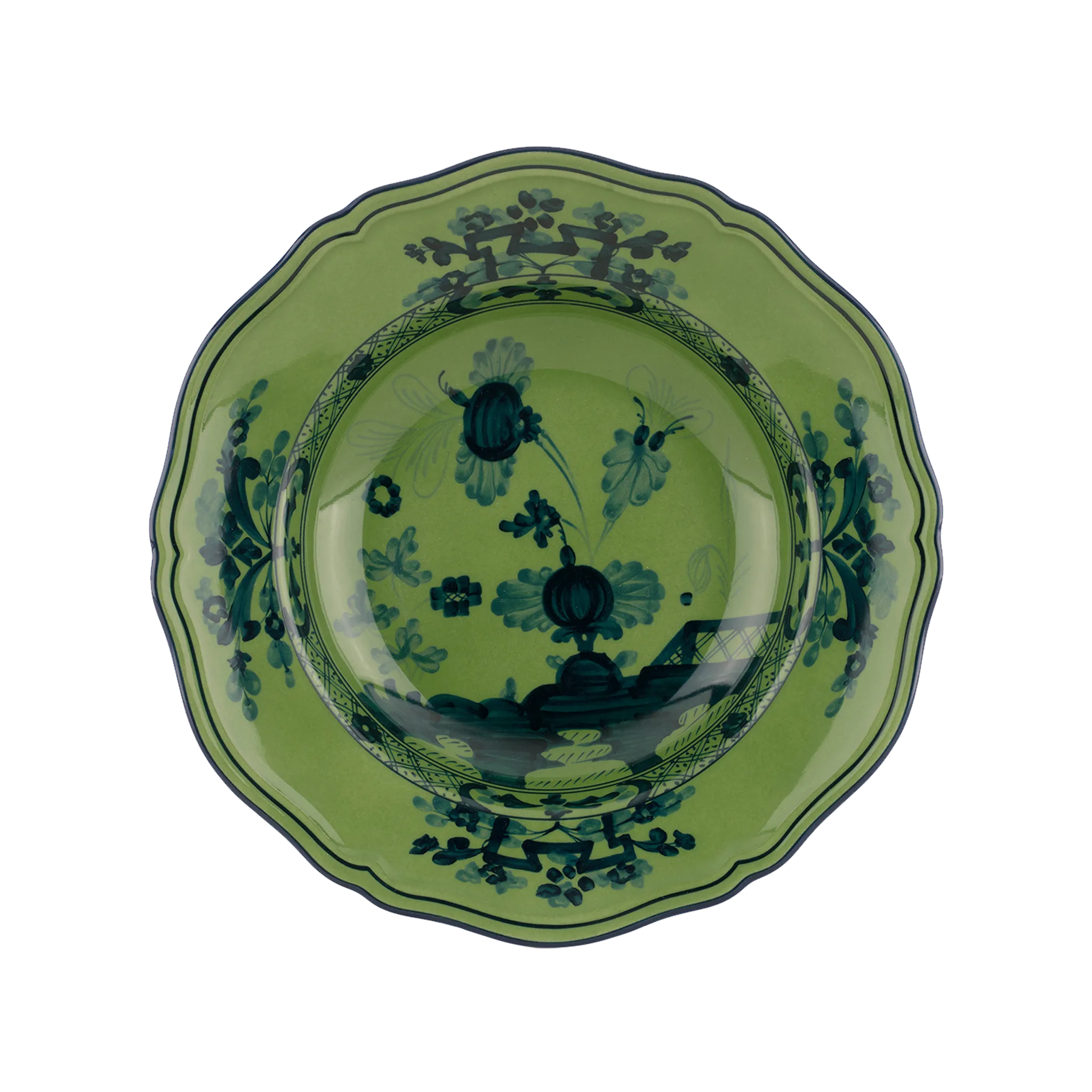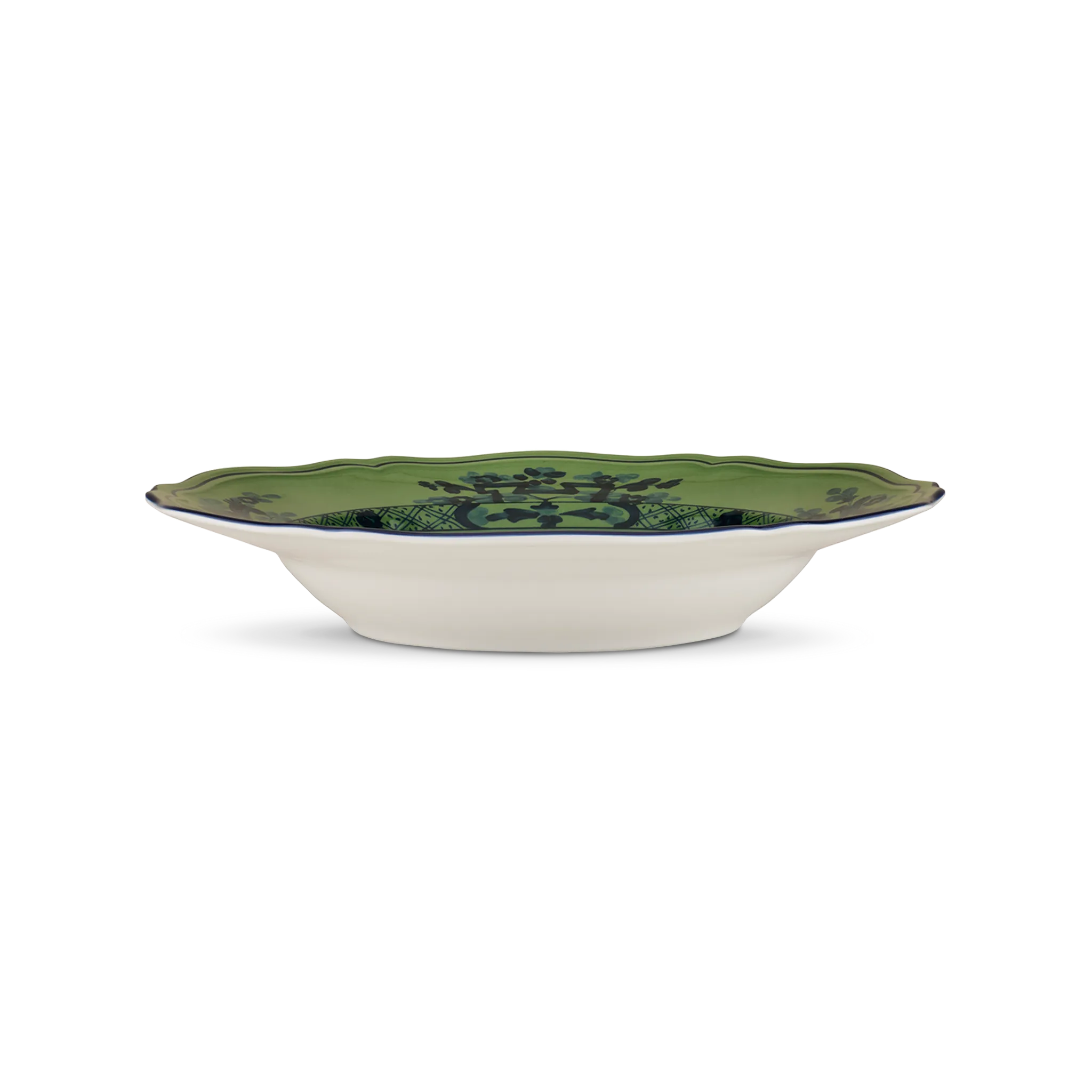 Parte da aclamada coleção Oriente Italiano, este prato fundo foi especialmente desenvolvido para acomodar porções generosas de espaguete, fettuccine, penne ou risotos, proporcionando elegância tanto na apresentação quanto no uso. Sua borda larga valoriza a composição do prato e destaca os detalhes decorativos da porcelana.