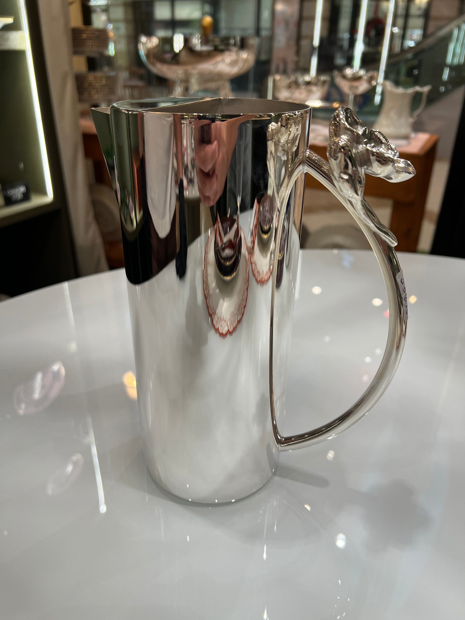 Seu design atemporal permite o uso em ocasiões especiais, recepções sofisticadas ou como elemento decorativo em ambientes clássicos. A prata confere brilho discreto, durabilidade e nobreza, tornando a jarra não apenas um utensílio funcional, mas também uma peça de destaque na mesa posta.